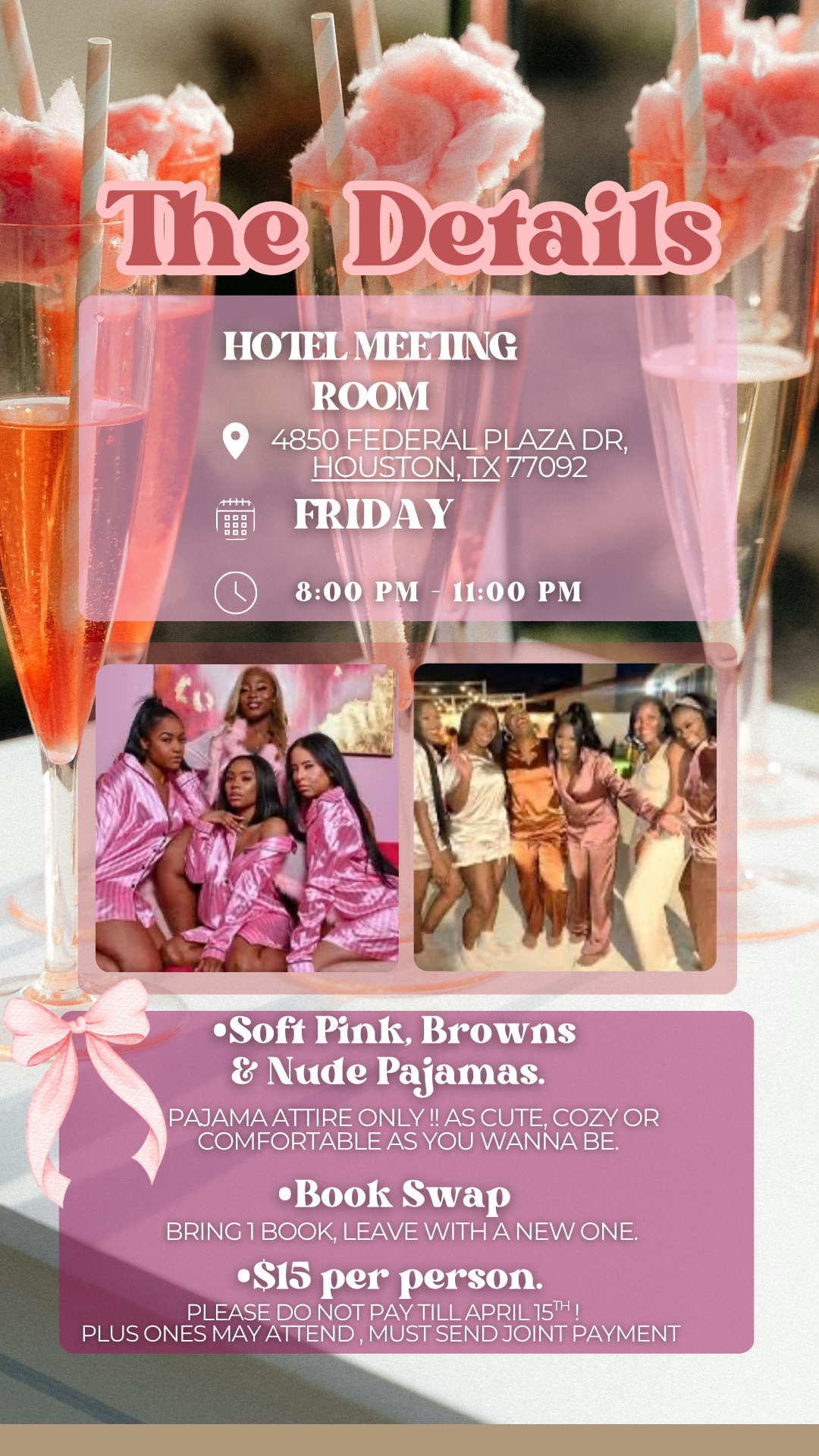 ✨ We’ll be doing a book swap — bring a book you love (or one you’re ready to pass along) gift wrap it before you come! and leave with a new one. — Pajamas : cute, cozy, or bougie — however you wanna show up.